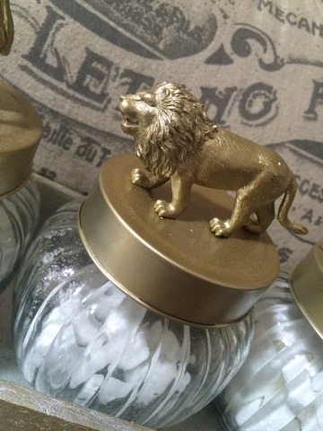 Atelier DIY tendance du moment ... Acheter des petits animaux en plastique vendus par lots au rayon des jouets pour enfants. Bomber les petits sujets à l'aide d'une peinture bronze ou chromée. Récupérer de jolis bocaux et assembler le tout avec de la super glue.